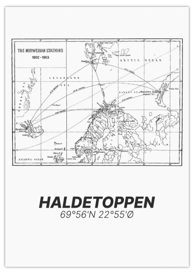 Inspirert av originalforsiden til boka “The Norwegian Stations 1899–1902”, kombinerer denne plakaten arktisk utforskerånd med moderne uttrykk. I ren og tidløs stil passer den like godt i stua som på kontoret eller hytta.
